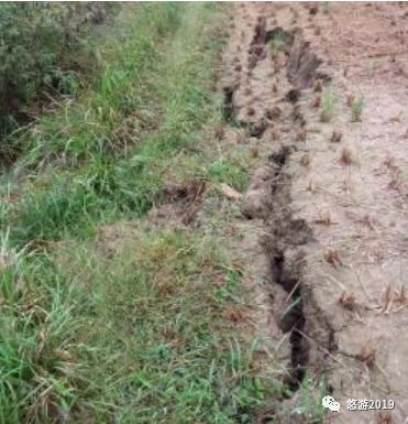 在路堤填方接近于线路标高时,填方路堤挤压下部堆积体发生滑坡。滑坡后缘位于路基后缘附近的松散堆积体开裂,裂缝宽 5~20cm,呈1.0~3.0m断续状分布。滑坡前缘位于前部河流阶地,存在轻微的鼓胀迹象。位于滑坡中部的土坯民居出现开裂、倾斜。滑坡平均宽约150m,主轴长约110m,滑坡总方量约9万方。